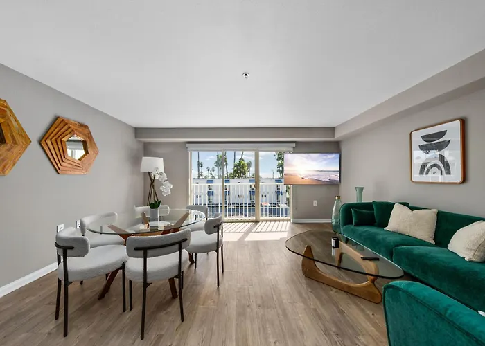 El apartamento Ocean Views - Rooftop Pool 2Br Santa Monica Los Ángeles, que incluye una terraza, se encuentra a 150 metros del Santa Monica Civic Auditorium. El Muelle de Santa Mónica está a poca distancia de este apartamento, mientras que el Paseo Third Street Promenade se sitúa a 1 km.